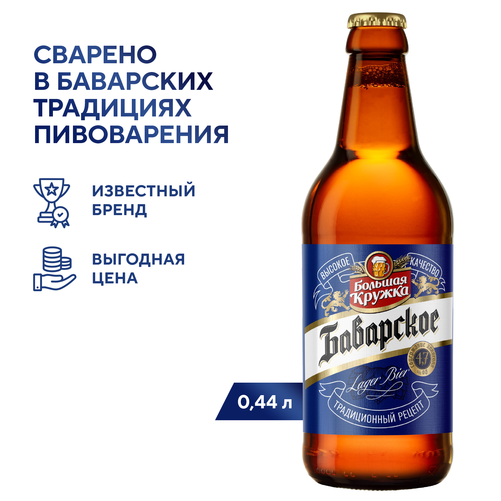 Сорт, сваренный в баварских традициях пивоварения. Пиво золотистого цвета с выраженным хмелевым ароматом и умеренной горечью придется по вкусу всем ценителям пенного напитка
