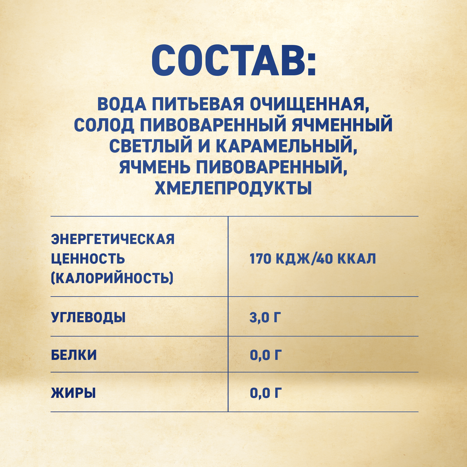 вода питьевая очищенная, солод пивоваренный ячменный светлый и карамельный, ячмень пивоваренный, хмелепродукты.