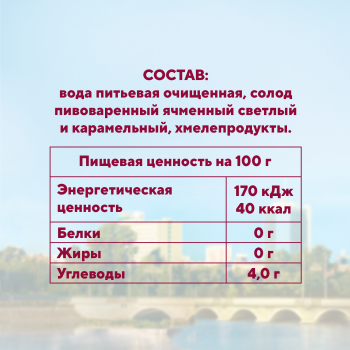 вода питьевая очищенная, солод ячменный светлый и карамельный, хмелепродукты