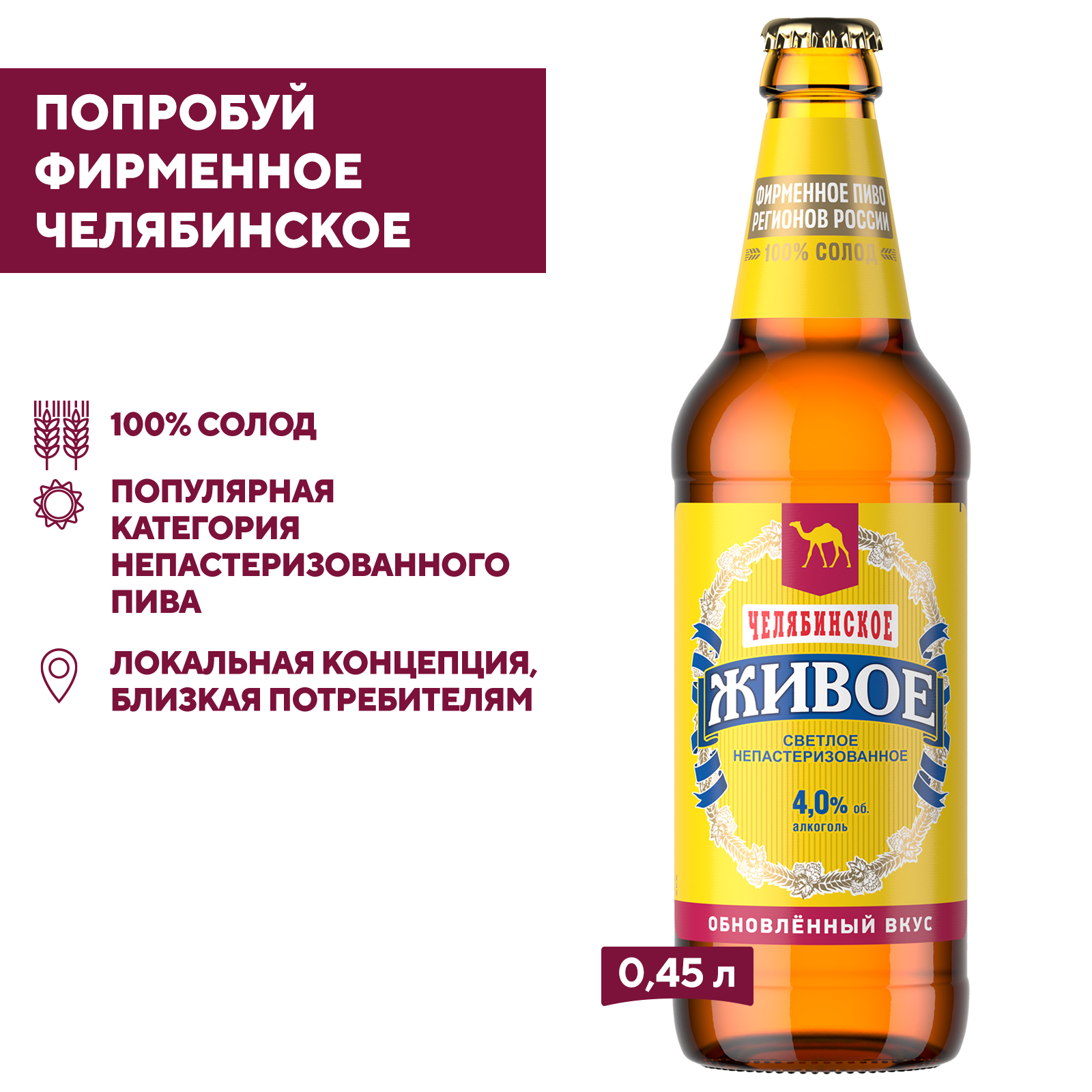 Пиво светлое "Челябинское Живое" бутылка 0,45 л