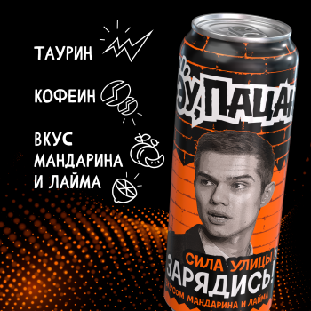вода питьевая очищенная, сахар, регуляторы кислотности: кислота лимонная и цитрат натрия, таурин, сок лайма концентрированный, ароматизатор пищевой натуральный «Тип Мандарин», ароматизатор пищевой «Тип Лайм», кофеин, подсластители: цикламат натрия, ацесульфам калия, сахаринат натрия, ароматизатор пищевой (стабилизаторы: гуммиарабик, эфиры глицерина и смоляных кислот, красители: желтый «солнечный закат», тартразин, антиокислители: токоферолы, концентрат смеси и аскорбилпальмитат), консерванты: сорбат калия и бензоат натрия.