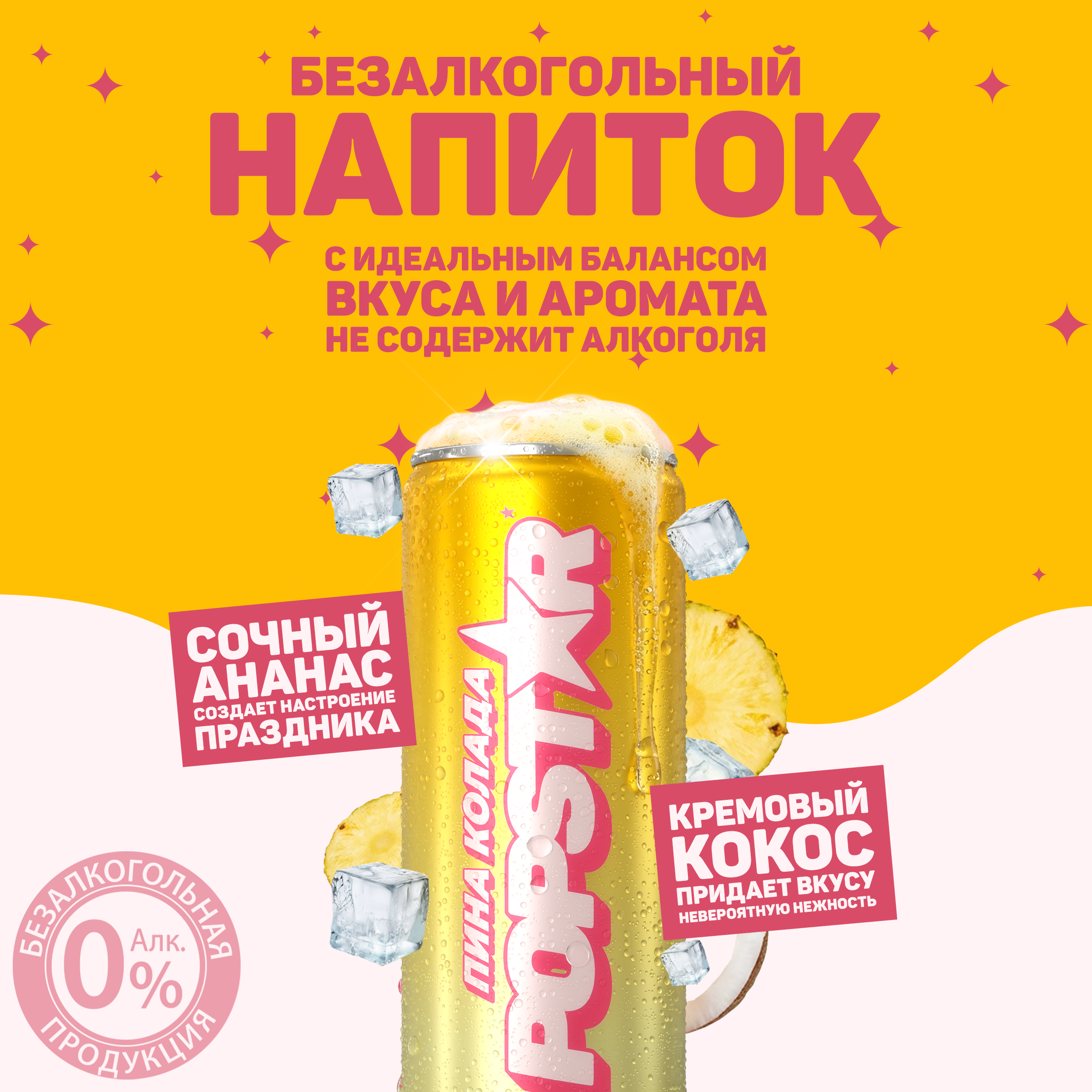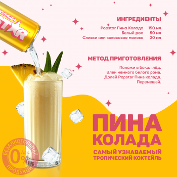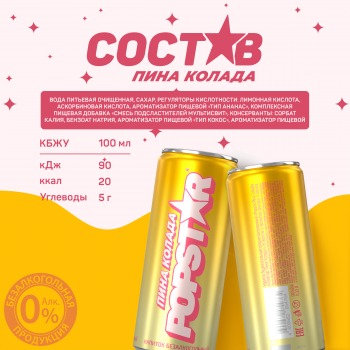 Безалкогольный среднегазированный напиток с идеальным балансом вкуса и аромата: сочный ананас создает настроение праздника, а кремовый кокос придает вкусу невероятную нежность. Не содержит алкоголя. Без добавления сахара.
