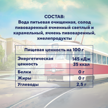 Вода питьевая очищенная, солод пивоваренный ячменный светлый и карамельный, ячмень пивоваренный, хмелепродукты