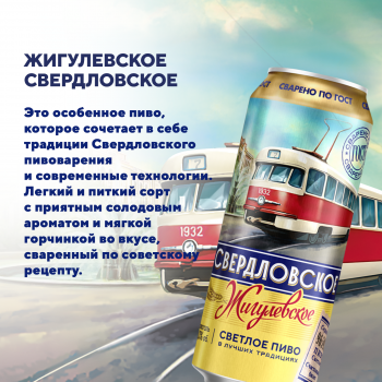 Светлый фильтрованный лагер c приятным солодовым ароматом и мягкой горчинкой, сваренный в свердловских традициях пивоварения из натурального сырья. Прекрасно освежает в жару и дарит приятное послевкусие
