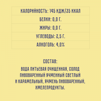 Вода питьевая очищенная, солод пивоваренный ячменный светлый и карамельный, ячмень пивоваренный, хмелепродукты